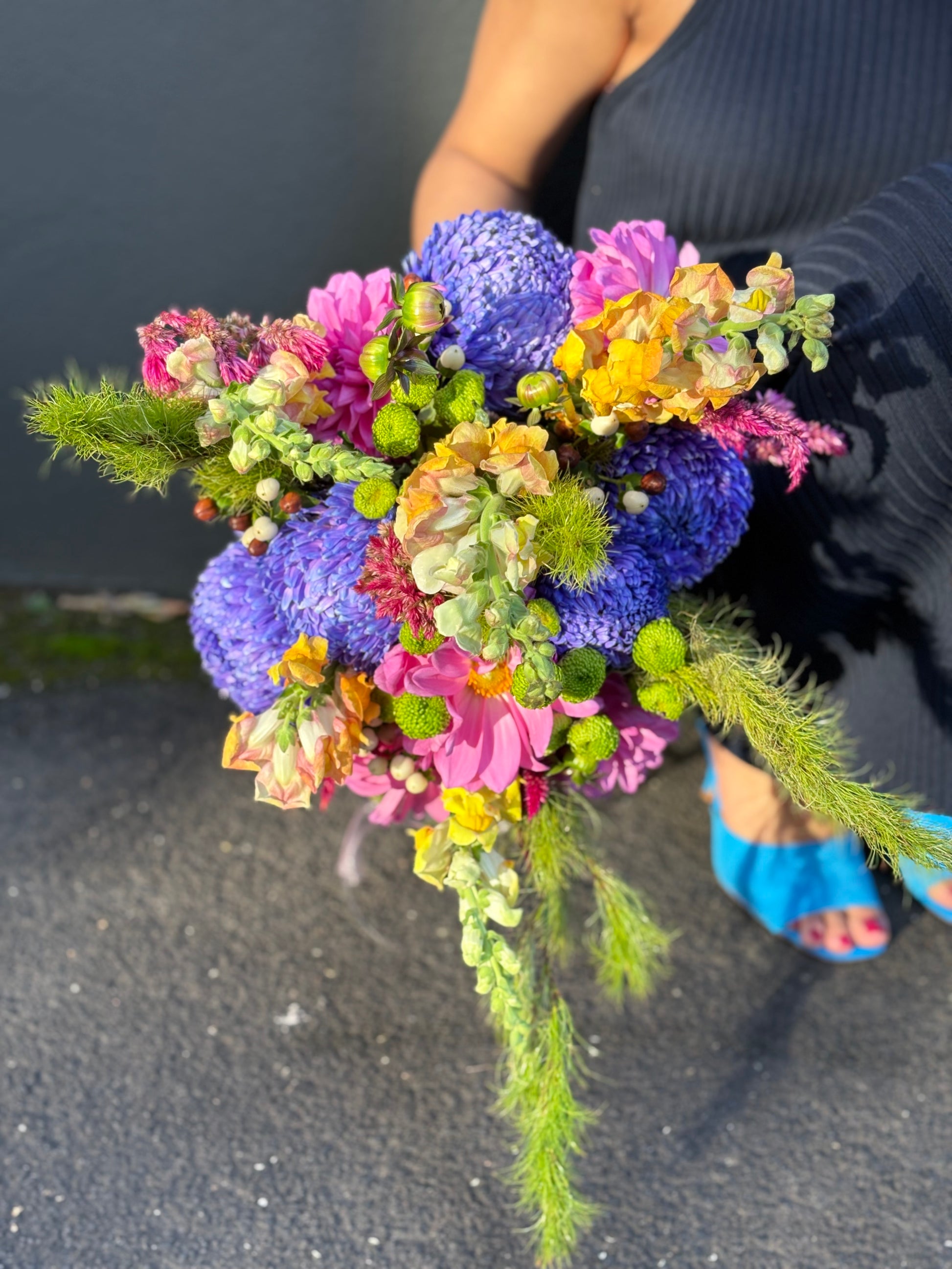 A joyful burst of colour, Graceful Garden brings together a lively seasonal mix of Dahlias, Gerberas, Snapdragons, Chrysanthemums, and Lillies. Bright, fresh, and full of charm, it’s like a blooming garden wrapped in grace and beauty.