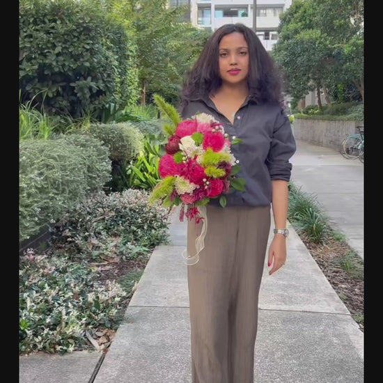 Romantic and radiant, Blooming Hearts features a graceful seasonal blend of soft blush to deep pink blooms, including Roses, Dahlias, Carnations, Hypericum Berry, Celosia. A perfect harmony of color and emotion.